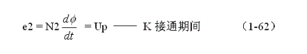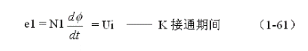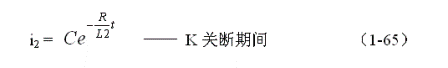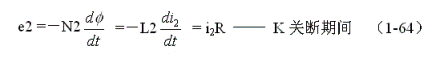 式中負號表示反電動勢e2的極性與(1-62)式中的符號相反,即:K接通與關(guān)斷時變壓器次級線圈產(chǎn)生的感應電動勢的極性正好相反。對(1-64)式階微分方程求解得: