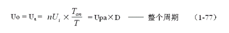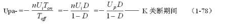 在變壓器開關(guān)電源中,正激式輸出電壓的計算比較簡單,而反激式輸出電壓的計算相對來說很復雜,因此,如果沒有十分必要,最好采用半波平均值的概念和(1-75)式,通過計算正激電壓的半波平均值,來推算反激式輸出電壓的半波平均值。因此,(1-75)式主要還是用來計算反激式輸出電壓的半波平均值的。