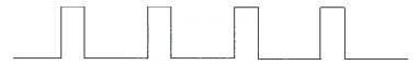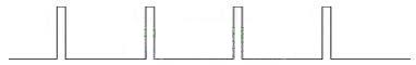 而當(dāng)輸出電壓降至50V5A時,控制脈沖的寬度降到最寬脈沖的10%,形如: