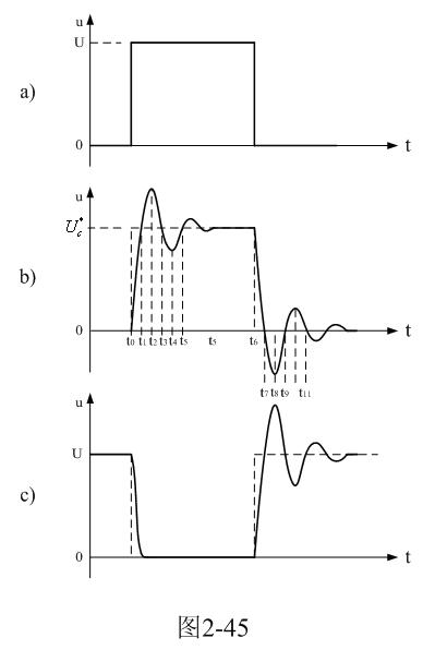 當開關管Q1導通過后,開關管開始關斷,相當于輸入脈沖電壓的上升率為負(脈沖進入反沖階段),此時,輸入脈沖電壓的上升率小于串聯振蕩回路自由振蕩電壓的上升率,因此,振蕩回路又開始再次釋放能量,振蕩回路再次產生阻尼振蕩,如圖2-45所示。