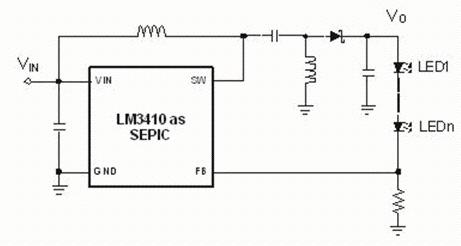 SEPIC轉換器擁有連續輸入電流的優點,這個連續輸入電流是由輸入電感和正輸出電壓產生的。像boost和單電感buck-boost,它們需要一個輸出電容來維持一個平滑LED電流。另外一個SEPIC轉換器的優點是幾乎任何一個低端調節器或者控制器都可以被設置成為一個毋需反偏或測平移動電路的SEPIC。