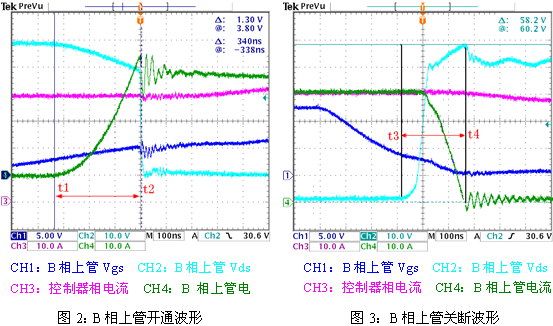 3.1.1 B相上管開通損耗(t1-t2),見圖2;