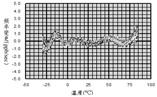 圖4 16MHz TCXO(80單位)相對于溫度的頻率變更率(在2°C/分變化)