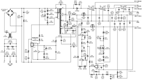 傳統的音頻系統通常使用基于線性變壓器的電源,不但體積笨重,而且隨著原材料價格的飛漲,制造成本日益昂貴。本文將為您介紹使用PowerIntegrationsPKS607YN設計的一款75W/126W峰值輸出電源。PeakSwitch產品系列為高質量的音頻及視頻產品電源提供出色解決方案,為高動態內容的音樂提供穩定的功率輸出。降低了THD(總諧波失真),并極大地提高了音頻的質量。如下介紹的設計使用一個PeakSwitch器件設計一個多路輸出的電源,并使用一個合適的磁放大器控制電路來確保兩個主輸出上的交叉穩壓。