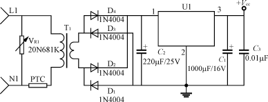 輸入電路的電阻R1(或R1、R2)要采用品質(zhì)較好的金屬膜電阻或水泥電阻,功率2~5W,阻值100~820Ω;降壓電容C2(或C5)采用高質(zhì)量的高壓金屬化聚丙烯電容,一般0.22~0.47μF,耐壓應≥AC250V,電容的容量過大會引起視在功率超標。