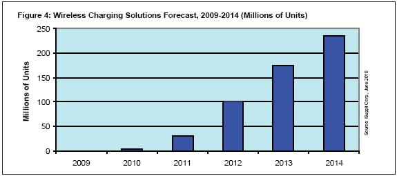 在產(chǎn)品專用無線充電方面,預(yù)計2010年解決方案將增長到360萬個,而去年只有20萬個。從明年開始,出貨量將急劇增長:2011年出貨量將達到3100萬個,2012年上升到1.018億個,2013年達到1.742億個,2014年底增長到2.349億個。預(yù)計無線充電售后市場的增長同樣驚人,五年的復(fù)合年度增長率高達133.4%,到2014年總體銷售收入將增長29億美元。產(chǎn)品專用解決方案包括充電器以及所謂的“皮膚”,即與特定產(chǎn)品一同銷售的接收器,而售后市場解決方案則包括通用充電器和可以與多種消費電子設(shè)備配合使用的各類皮膚。