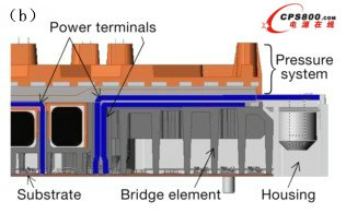 SkiiP技術中有一個方案解決了基板和焊接連接方面的問題,即將基板和與襯底相連的大面積易疲勞焊接連接全部去除,轉而采用受專利保護的壓接系統。在壓接系統中,襯底通過機械壓力被壓在散熱器上。由于陶瓷襯底比較靈活并且壓力是通過幾個點上的機械“手指”施加的,可保證陶瓷襯底和散熱片之間的接觸非常緊密。因此,散熱涂層的厚度可以減少僅為(20-30)µm。相比之下,帶基板模塊的散熱涂層的厚度為100µm。