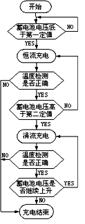 軟件設計的流程圖如圖5所示,在恒流充電階段,電壓傳感器產生的電壓信號、電流傳感器產生的電壓信號傳送到單片機以后,單片機產生2V的D/A信號給調理電路,在檢測到蓄電池兩端電壓達到第二定值時,充電器進入涓流充電階段,單片機電路產生較小的D/A值,使蓄電池以較小的電流充電(涓流充電),當檢測到蓄電池電壓不再上升(或者發生明顯的變化)時,單片機電路給出關斷充電器信號,蓄電池充電過程結束。