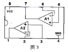 安全保護(hù)電路由KIA358電路來完成。出現(xiàn)異常情況時向TL494的16腳提供高電平。KIA358為雙運(yùn)放電路(如圖3)。
