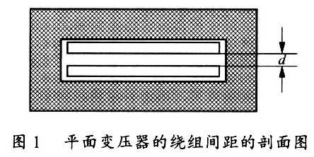 在平面型變壓器里,其“繞組”是做在印制電路板上的扁平傳導(dǎo)導(dǎo)線或是直接用銅泊。扁平的幾何形狀降低了開關(guān)頻率較高時(shí)趨膚效應(yīng)的損耗,也就是渦流損耗。因此,能最有效地利用銅導(dǎo)體的表面導(dǎo)電性能,效率要比傳統(tǒng)變壓器高得多。圖1給出了一個(gè)平面變壓器的剖面圖,并且利用兩層繞組間距離的不同,而獲得在不同間隙下的漏感和交流阻抗值。