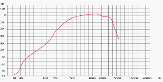 依據(jù)ITU推薦,電話(huà)衡重(加權(quán))雜音是以800Hz雜音電壓為標(biāo)準(zhǔn),其它頻率雜音電壓的響應(yīng)強(qiáng)度,用等效雜音系數(shù)表示,表二中給出了國(guó)際電聯(lián)ITU-T建議O.41(藍(lán)皮書(shū)卷IV.4O系列建議)的電話(huà)衡重雜音(噪聲計(jì)加權(quán))的數(shù)據(jù),反映為圖形曲線(xiàn)如圖一所示。