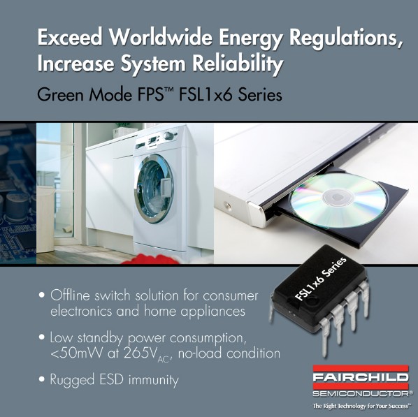 飛兆半導(dǎo)體公司 (Fairchild Semiconductor)近期開發(fā)出FSL1x6 系列綠色模式飛兆功率開關(guān) (FPS)器件,這些集成式PWM控制器帶有專有的綠色模式功能,提供了先進(jìn)的間歇模式控制,并在間歇模式下關(guān)閉部分功能模塊減小控制器自身操作電流,從而最大限度地降低待機(jī)功耗。