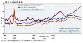 重新設計的步進系統的運行扭矩比前面的skc模型高出20%~30%,使用同樣的輸入功率和價格合算的永磁材料,rexbergsma,skc(u.s.)的董事長解釋說,改進是為轉子添加額外的永磁材料。由于總空間是固定的,需要移動某個定子的位置,即相繞阻的地方。疊片的重新設計也改進了skc新型的stp-430步進電機的轉子和定子的齒形。結果形成一個更強大,更集中的磁場,減少了噪聲(見圖)和“建立時間(阻尼),比前一種模型的速度快了近兩倍,”bergsma.說。