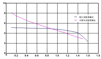 圖1:穩壓與非穩壓適配器的負載曲線圖。