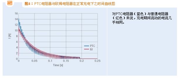 相比之下,如果將固定電阻器用作充電電流限制器,上述故障將導致電阻器產生相當高的功率耗損,這會要求元件要有一定大的尺寸,這很不經濟。以下特殊實例(見圖3)可清楚說明這一功能原理。