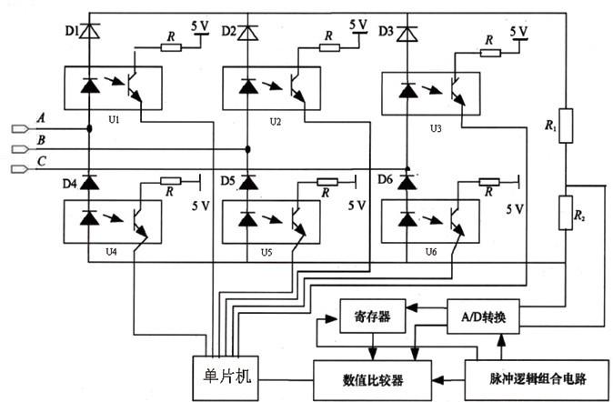 在使用三相交流電時(shí),往往要利用三相交流電的自然換相點(diǎn)作為控制的參考點(diǎn),所以需要對三相交流電的自然換相點(diǎn)進(jìn)行檢測,以保證用電設(shè)備的安全可靠運(yùn)行,同時(shí)對三相交流電的頻率、相序、缺相情況進(jìn)行實(shí)時(shí)監(jiān)測,并且在三相電源出現(xiàn)異常時(shí),進(jìn)行相應(yīng)的告警并做出保護(hù)措施。