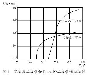 2)在低電流密度(JF<10 A/cm2)下,有比P+ -n-N+結構的整流二極管更低的通態電壓。