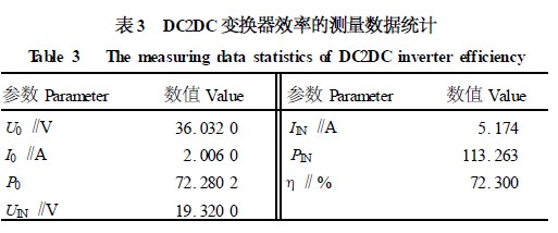 (5)DC2DC 的變換效率。分別用5 位半的數字表測得負載電壓和電流與DC2DC 變換器的輸入電壓和電流,然后計算出輸入和輸出功率,便可計算出效率。
