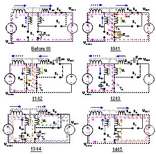 在t0前,BC²電路的特性與傳統(tǒng)升壓轉(zhuǎn)換器的特性相同。升壓二極管DB 導(dǎo)通,通過(guò)體電容器發(fā)射主線圈能量。
