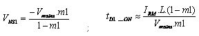在t1+時(shí),升壓二極管DB 關(guān)斷,過(guò)流IRM被貯存小線圈內(nèi),過(guò)流使DB 結(jié)電容線性放電。同時(shí),主線圈上的電壓極性發(fā)生變化,直到D1 二極管導(dǎo)通為止。與此同時(shí),過(guò)流IRM 被變壓比m1降低,然后被發(fā)射到主線圈內(nèi)。