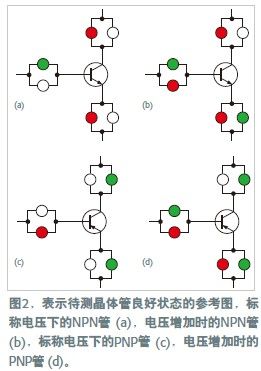 了解這點(diǎn)以后,就能輕松地選擇出晶體管的基極。至于集電極與射極的區(qū)別,必須了解其特性,即在反偏時(shí),基-射結(jié)的擊穿要比基-集電極結(jié)更容易,后者在正常工作情況下是反偏的。