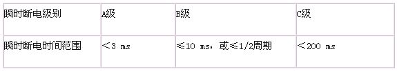 工業(yè)現(xiàn)場的供電品質很差,常常不能達到國家對電網(wǎng)波動等級中規(guī)定的最低標準C級。表1列出了國家標準對電網(wǎng)波動等級的規(guī)定。當供電電壓超過C 級規(guī)定時,通常稱為過壓或者欠壓。而失壓又稱瞬時斷電。產(chǎn)生瞬時斷電,最常見的原因是用電設備突然短路而它的保險絲還沒有熔斷的瞬間。另外開關或刀閘觸點接觸不良或顫抖等也會產(chǎn)生瞬間斷電。瞬間斷電所允許時間國內尚無標準,表2列出了日本《工業(yè)用計算機環(huán)境標準》中規(guī)定的瞬間斷電級別。
