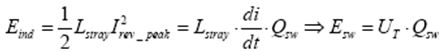 達到電流峰值tIpeak時,雜散電感中會儲存感應電量,Coss中也會儲存電容電量。因此,可以進行電量比較:
