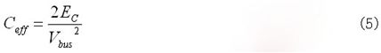 如果依據漏源電壓變化的輸出電容值可得,則輸出電容儲能可用公式(4)求出。雖然電容曲線顯示在數據表中,但要想從圖表中精確讀出電容值并不容易。因此,依據漏源電壓變化的輸出電容儲能將由最新功率MOSFET數據表中的圖表給出。通過圖3顯示的曲線,使用公式(5)可以得到期望的直流總線電壓下的等效輸出電容。
