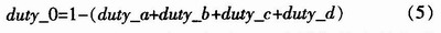 以虛擬整流器、逆變器均工作在第一扇區(qū)為例,相量合成的固定空間電流、電壓相量分別是I6、I1和U6、U1,兩個(gè)空間相量的綜合調(diào)制采用相互嵌套的辦法來實(shí)現(xiàn)。整個(gè)輸入相電流和輸出相電壓相量合成共有I6-U6、I6-U1、I1-U6、I1-U1、I0-U0 5種組合。每一相量組合的作用時(shí)間用占空比duty來表示。等式(1~5)反映了占空比的計(jì)算公式。占空比可以通過表1來分配給相應(yīng)的開關(guān)組合。