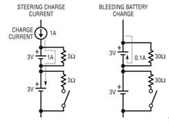 利用跨電池組中每一節電池的旁路電阻器和開關實現無源平衡硬件。平衡電阻器的使用一般采用兩種方式之一 (圖 2)。電阻器可用來導引充電電流繞過電池,以便具較低充電狀態 (SOC) 的電池能以較高的速率保持充電,而不會使具有高 SOC 的電池有過充電和損壞的風險。該電阻器也可用來使具較高充電狀態的電池泄放過多的電荷,以使這些電池與具較低 SOC 的電池實現均衡。