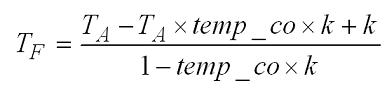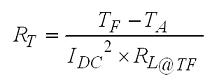 這里要注意的一件事情是電感器的功耗是其線圈電阻的函數(shù),后者會隨著溫度發(fā)生變化。因此,需要考慮計算電感器在給定RT的TF。將RT的等式插入電感電阻與溫度等式并求解TF可以得出: