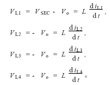 通過以上分析可以看出, 倍流整流結(jié)構(gòu)的二次側(cè)2 個(gè)濾波電感電流在濾波電容上相互疊加, 從而使得輸出電流紋波變得相當(dāng)小。
