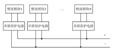 (4) 模塊并聯(lián)保護。每個模塊內部均有并聯(lián)保護電路, 可以保證模塊發(fā)生故障時自動退出系統(tǒng),從而不影響其他正常模塊的工作。模塊并聯(lián)輸出示意圖如圖6所示。