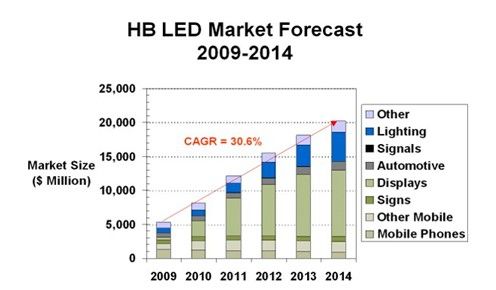 根據(jù) Strategies Unlimited 公司的數(shù)據(jù) (參見圖 1),到 2012 年,高亮度 (HB) LED 的市場規(guī)模預(yù)計將達到 120 億美元,到 2015 年,該市場將增長到 202 億美元,年復(fù)合增長率為 30.6%。目前,用來給顯示器進行背光照明的 LED 是這種前所未有的增長的主要驅(qū)動力。應(yīng)用包括高清電視機(HDTV)、汽車顯示器和大量手持式設(shè)備。為了保持這種令人驚嘆的增長率,LED 不僅必須提供增強的可靠性、更低的功耗和更小 / 更扁平的外形尺寸,而且必須實現(xiàn)對比度、畫面清晰度和色彩準確的明顯改進。此外,汽車、航空電子設(shè)備和航海電子產(chǎn)品的顯示器必須最大限度地實現(xiàn)所有這些改進,同時能接受從明亮的太陽光到?jīng)]有月亮的夜晚等多種環(huán)境照明條件。這些由晶體管液晶顯示器(TFT-LCD) 實現(xiàn)的顯示應(yīng)用包括信息娛樂系統(tǒng)、計量表和種類繁多的儀表顯示器。用 LED 對這些顯示器進行背光照明引起了一些獨特的 LED IC 驅(qū)動器設(shè)計挑戰(zhàn),因為要在多種環(huán)境照明條件下優(yōu)化顯示器的可讀性。這要求 LED 驅(qū)動器能提供非常寬的調(diào)光比和高效率轉(zhuǎn)換,同時能承受汽車中相對苛刻的電及物理環(huán)境的嚴酷性。最后,這些解決方案必須提供非常扁平、緊湊的占板面積,同時提高性價比。