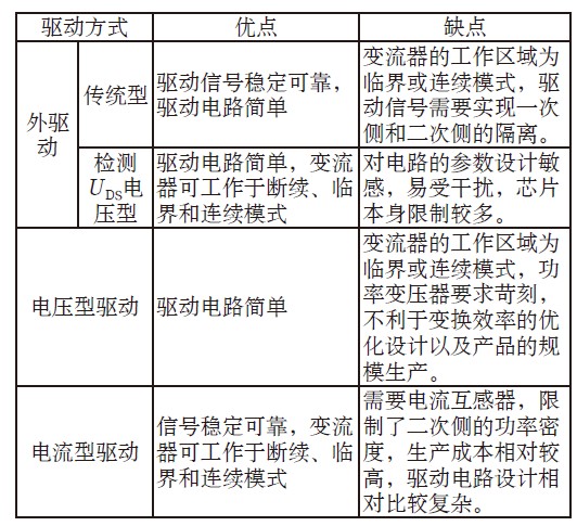 表1 不同的同步整流管驅動方案比較