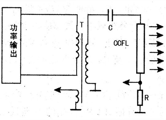 在背光板驅(qū)動電路中,前級(振蕩器和調(diào)制器)和功率輸出部分基本上是工作在開關(guān)狀態(tài)(因開關(guān)狀態(tài)工作效率高,輸出功率大),輸出信號基本也是開關(guān)信號。燈管的最佳供電電壓波形應(yīng)是正弦波,為了保證燈管工作在最佳狀態(tài)(對于發(fā)光亮度及壽命是非常重要的),因此必須把功率輸出級輸出的方波信號變換為正弦波,這一過程簡稱正弦化過程,其具體處理方式有兩種:一是在高壓變壓器高壓輸出端進行處理,二是在高壓變壓器低壓輸入端進行處理。目前,大多采用后一方式,而前一種方式多用于早期的背光燈驅(qū)動板中,下面分別進行介紹。