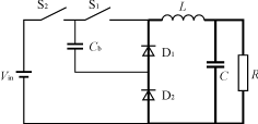 模態1:如圖2(a)所示。在t=0時刻,觸發開關管S2,使S2導通,二極管D2則反偏截止,電壓源Vin通過隔直電容Cb給電感L充電。