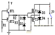 關(guān)互補(bǔ)電路實(shí)際上是繼電器的一個(gè)旁通電子開關(guān),采用兩只IGBT、兩只二極管構(gòu)成的交流通路,是互補(bǔ)式交流穩(wěn)壓器的主要技術(shù)點(diǎn),電路如圖3: