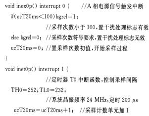 系統(tǒng)主程序通過對bgrc1進(jìn)行判斷,如果有效進(jìn)行干擾軟件處理,無效則采用測量過程沒有受到電源的高頻干擾,進(jìn)行正常的計算處理。