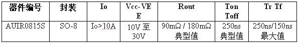 全球功率半導體和管理方案領導廠商國際整流器公司 (International Rectifier,簡稱IR) 近日推出車用IC ── AUIR0815S,具備超過10 A 的高輸出電流,能夠驅動逆變器級的大型 IGBT 和 MOSFET,適用于混合動力汽車和電動汽車中的動力系統。