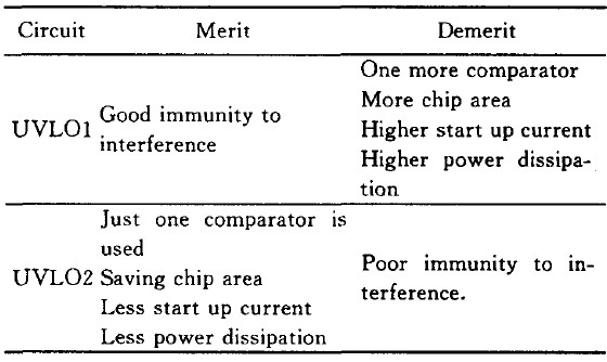 時,比較器開始跳變,N1關斷,UVLO-out為0,使能整個控制芯片。當外部電源電壓開始減小到: