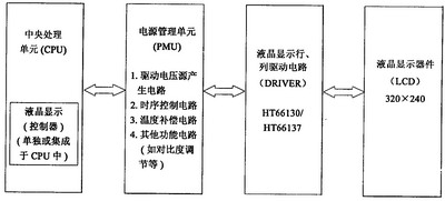 要實現液晶顯示器顯示須具備以下4 個單元:控制器(Controller) 、電源管理單元(PMU) 、驅動電路(Driver) 、液晶顯示器件(LCD) 。對于分辨率較小的液晶顯示器件,如128×64、128×32等模塊都具有控制器、電源管理單元、驅動器于一體的芯片。但對于高分辨率的液晶顯示器(如320×240 ,640×480) 需要單獨的控制器、電源管理單元、驅動器。本文給出了一種高分辨率液晶顯示器電源管理電路的設計方案。