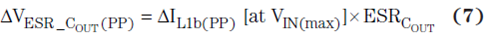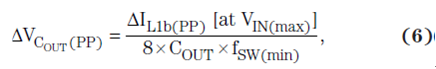 其中 fSW(min) 為最小開關(guān)頻率。方程式 7 計算了完全由輸出電容 ESR 引起的輸出紋波電壓部分: