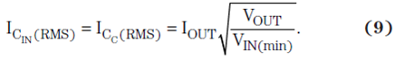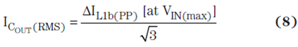 輸出電容必須有一個大于電容 RMS 電流的 RMS 電流額定值,其計算方法如方程式 8:
