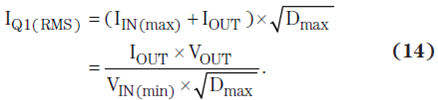 其中,QGD 為柵極到漏極電荷,QG 為 FET 的總柵極電荷,IGate 為最大驅(qū)動電流,而 VGate 為控制器的最大柵極驅(qū)動。Q1 的 RMS 電流為: