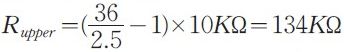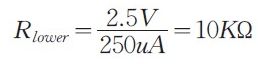 假設流經橋分壓器的電流為250uA,由于TL431 的參考電壓為2.5V,則: