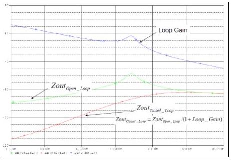 圖1 閉環輸出阻抗峰值Zout出現在控制環路交叉頻率處