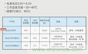 日本知名半導體制造商羅姆(總部位于日本京都)開發出取代家電和OA設備等的機械式ON/OFF開關的、構筑電容式觸控開關的控制器IC“BU21079F”。