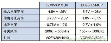 表1:BD95601MUV(1ch)、BD95602MUV(2ch)的規格概要