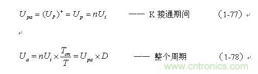 (1-76)式就是計算單激式變壓器開關(guān)電源輸出電壓的表達(dá)式。式中,Upa和Upa-分別稱為單激式變壓器開關(guān)電源輸出電壓的正半波平均值和負(fù)半波平均值。